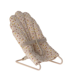 Perfectly sized for Maileg’s tiniest friends, the Babysitter My is a charming little bouncer chair designed to cradle My-sized rabbits. With a delicate floral patterned cotton cover and a sturdy metal frame, this sweet accessory adds a realistic and playful touch to your Maileg world. Thoughtfully detailed and scaled for little hands, it’s an essential for imaginative play and nursery scenes.