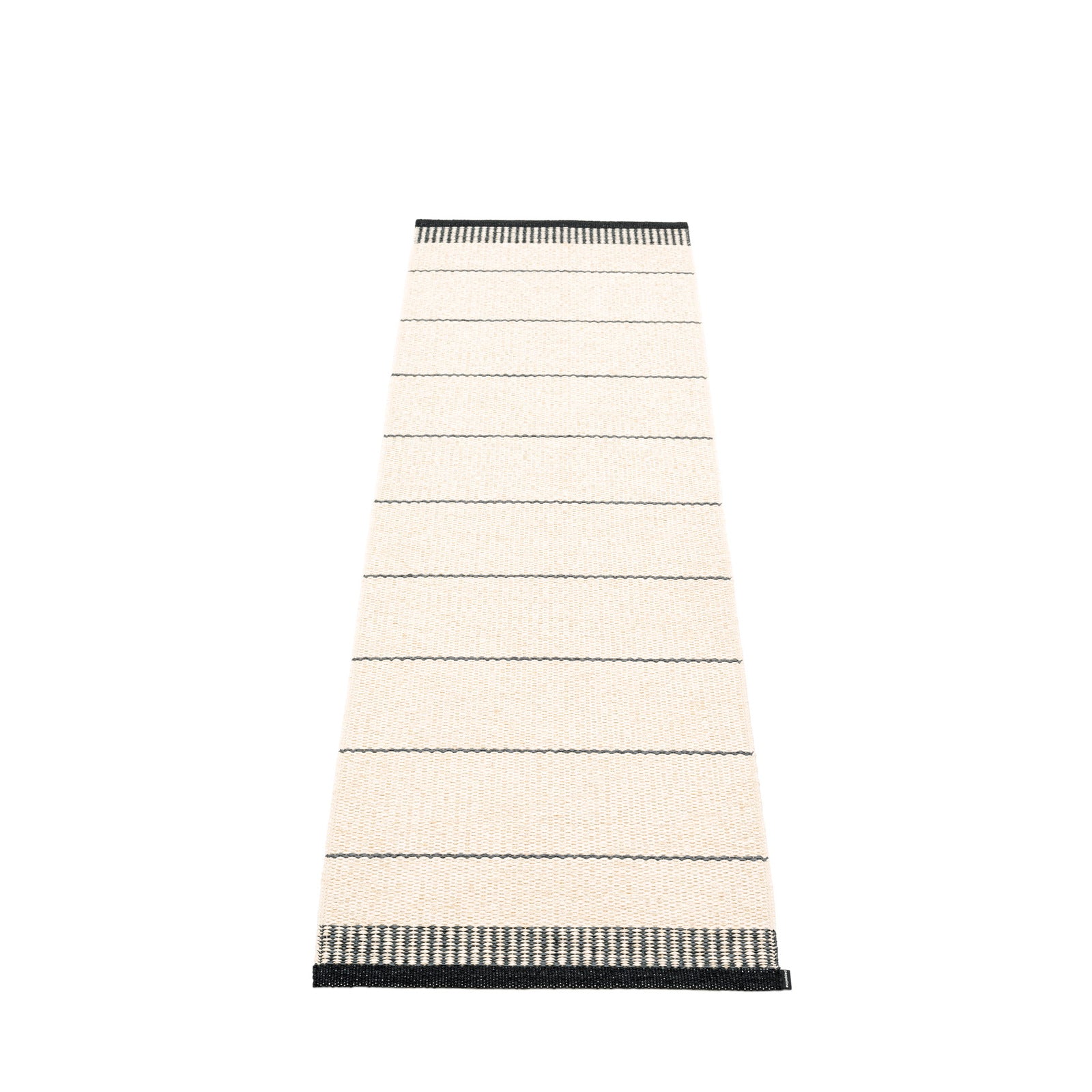 The BELLE rug in Black and Vanilla delivers bold contrast and timeless sophistication, highlighted by its signature metallic border. Expertly woven using Pappelina’s exclusive technique, this design features added thickness for a premium look and feel. Ideal for both indoor and outdoor use, BELLE is reversible, water- and UV-resistant, hypoallergenic, and machine washable. With Cfl-s1 fire classification and tested commercial durability, it’s a stylish and practical solution for residential interiors, retail spaces, and hospitality settings.