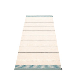 The BELLE rug in Haze, Vanilla, and Charcoal captures a serene yet sophisticated aesthetic, enriched by its signature metallic border and gracefully curved pattern. Woven with Pappelina’s exclusive technique for added thickness and luxurious feel, it’s both stylish and functional. Ideal for indoor and outdoor environments, BELLE is reversible, UV-resistant, hypoallergenic, and machine washable. Fire-rated Cfl-s1 and tested for commercial wear, it’s a dependable, high-quality choice for retailers and design professionals seeking elegant, versatile floor coverings.