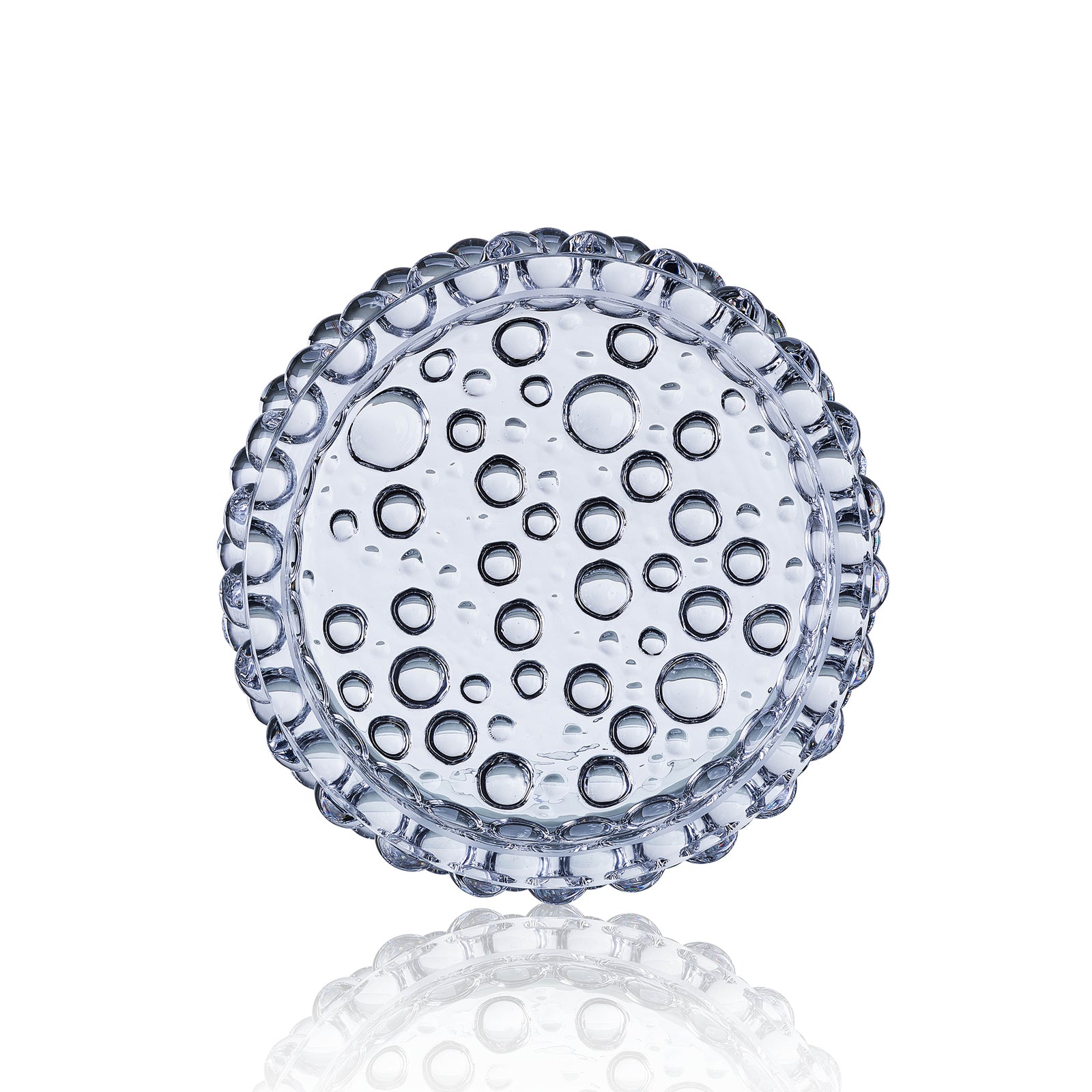 Add a chic finishing touch to your mantelpiece with this true collectors’ piece. Expertly hand-made in Bohemia, this beautiful trinket tray features an elegant hobnail design. The bubbles, created in a cast-iron mould, give Hurricane Plateau its own unique optic pattern and a luxurious weighty feel. Measures 24cm (Dia) x 5cm (H). Recommended for use with a 7-8cm diameter candle. Please click here for care instructions.