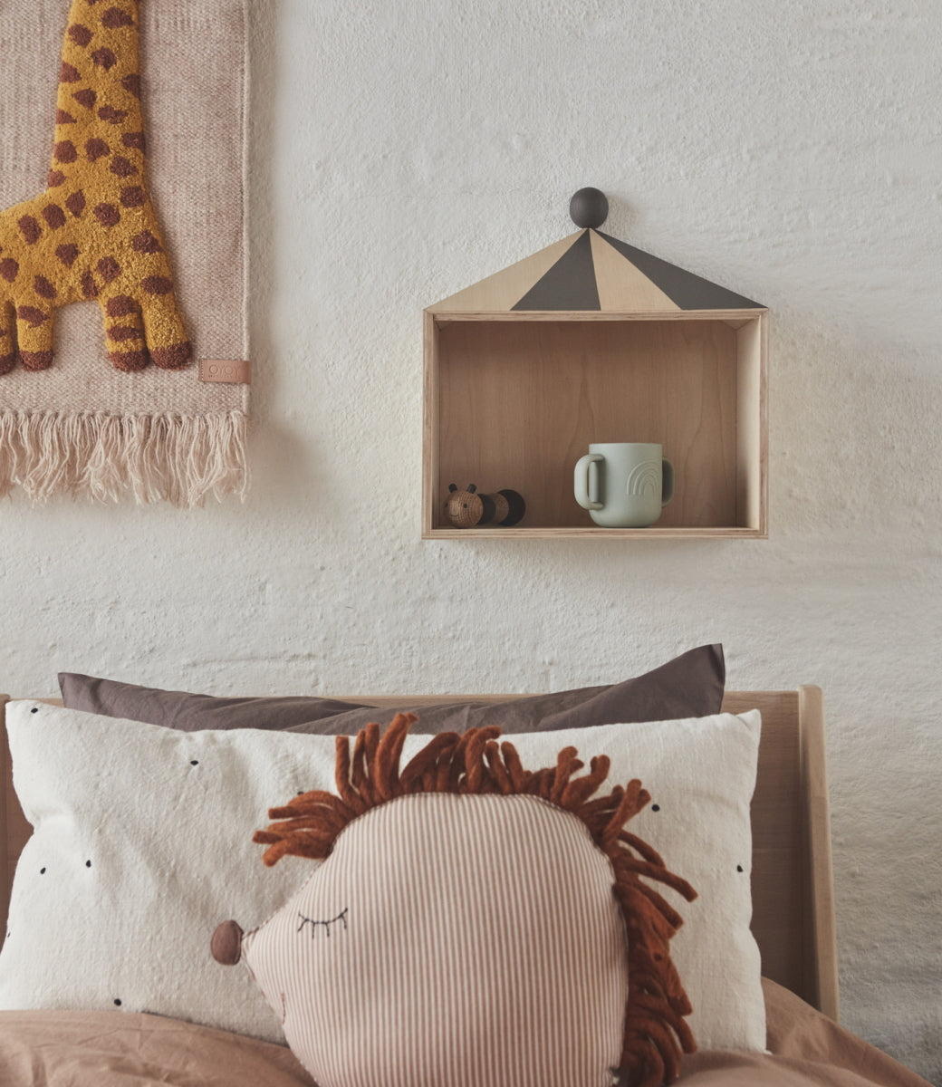 The Low Circus Shelf is the perfect shelf for the children's room. Made of ash wood and designed to display your child's favourite books and toys. Measures 33cm (H) x 30cm (W) x 15.5cm (D).