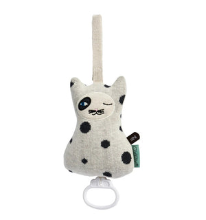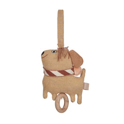 Let your child relax with this sweet music mobile. The Lullaby melody is calm and gentle. The music starts when the small wooden ring is pulled down. The music mobile represents Coco Dog and is sure to create smiles and joy. Made of cotton with recycled polyester filling. Measures 24cm (H) x 13cm (L) x 6cm (W).