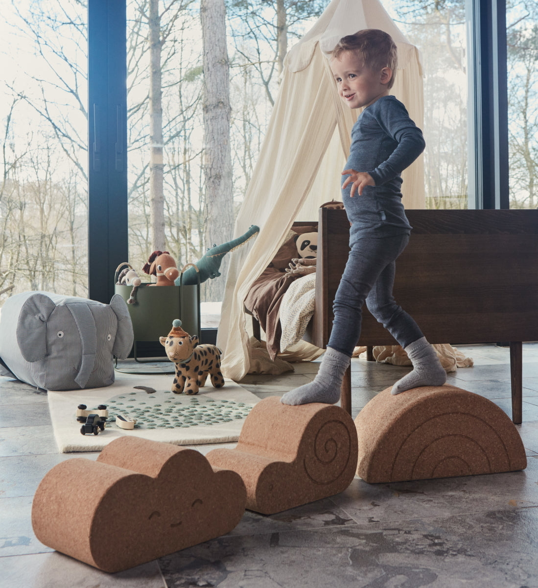 The Cork Chloe Cloud is the perfect accessory for a child's room. It is decorative but also functional. Chloe Cloud is great for developing kids gross motor play and invites for hours of fun. Measures L45cm x W20cm x W22cm. The Chloe Cloud should always be placed on the flat sides to prevent it from tipping over and is recommended for children from 2 years and older.