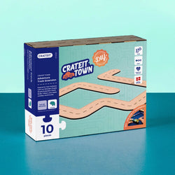 Expand the fun with the Crateit Adventure Track Extension Wooden Toy. This Danish-designed and made, FSC-certified set includes 10 interlocking puzzle-style wooden road pieces, perfect for extending any Crateit Town layout.
