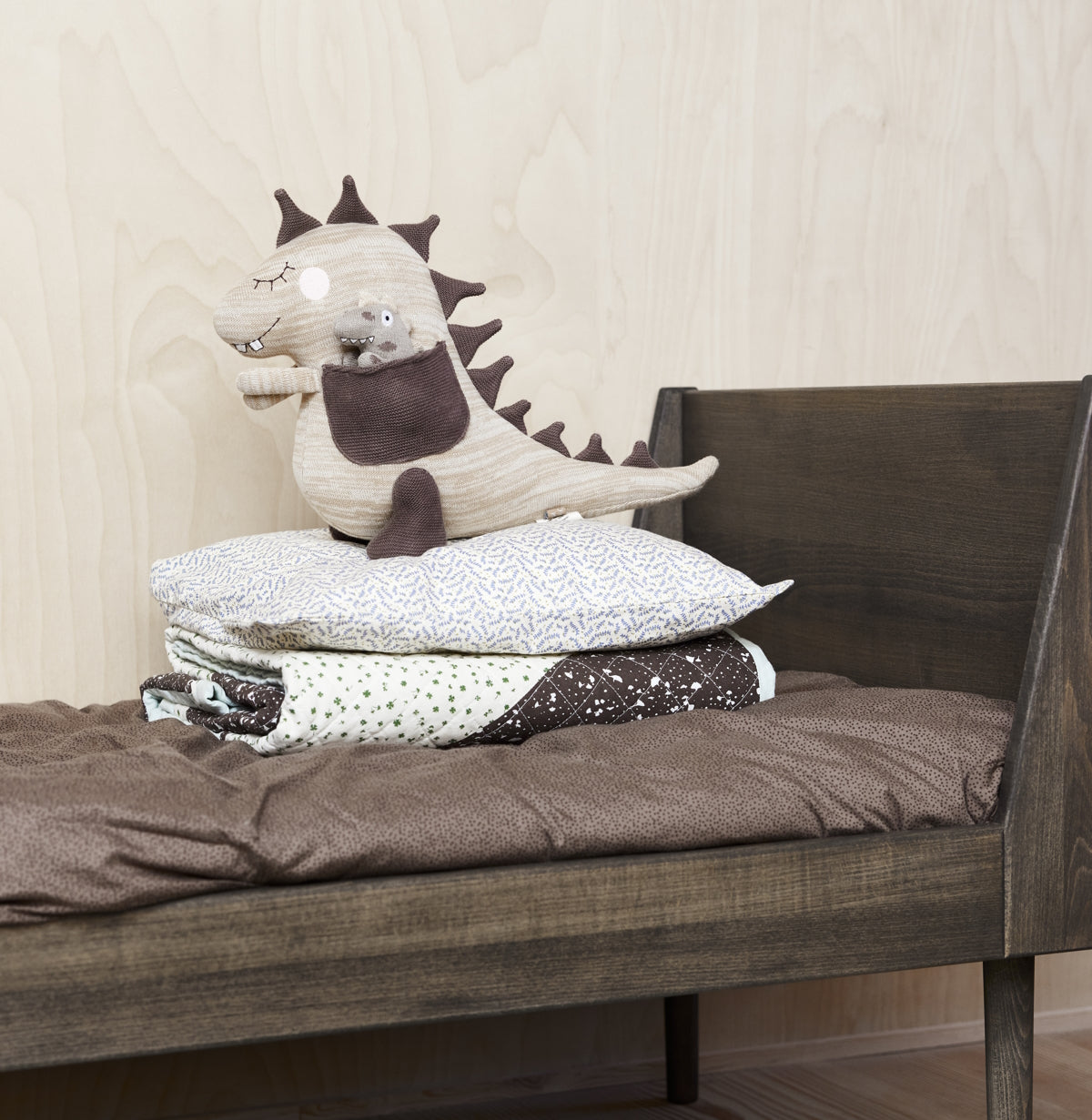 The sweet Dina & Bobo Dinosaur are ready to move into your home. Bobo lives safely and comfortably in his mothers pocket. Perfect for playing with or snuggling at bedtime. Made of cotton with recycled polyester filling. Dina measures 30cm (H) x 44cm (L) x 19cm (W). Bobo measures 13cm (H) x 14cm (L) x 4.5cm (W).