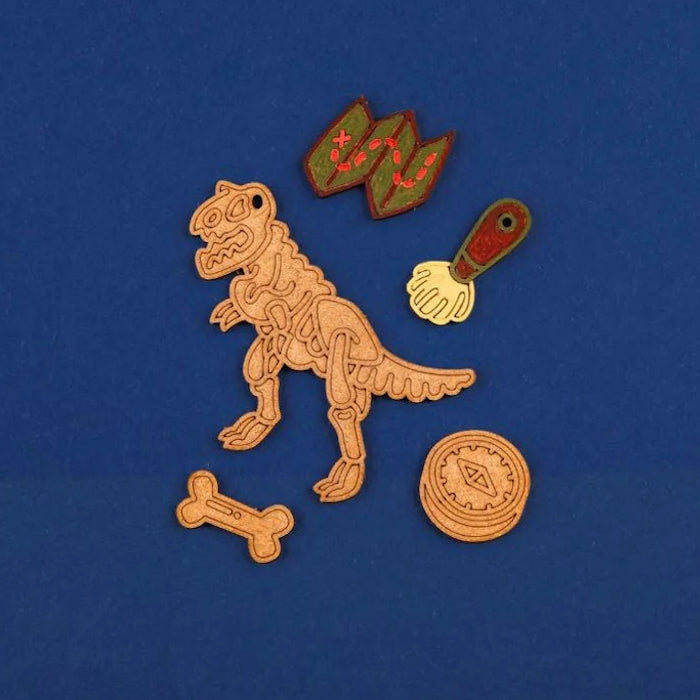 Experience the thrill of paleontology with this Fossil wooden toy. Let your child dig deep into the mysteries of the past with this realistic dinosaur fossil. Collect the accompanying meat bones, use the compass to navigate and the map to discover hidden treasures.