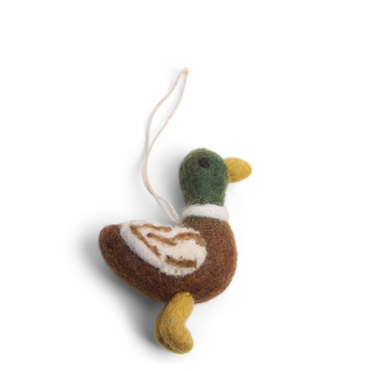 Handmade felted hanging decoration measuring 5.5cm x 8cm.