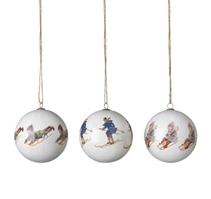 The endearing stories by the children’s book author and illustrator Elsa Beskow have been interpreted by Catharina Kippel, a designer who has worked with Design House Stockholm from the beginning. Using visual quotations from Elsa Beskow’s works, Catharina stresses the humour with which Elsa so typically portrays people and nature. Made of lacquered paper decoupage with a metal hook and textile string. Measures 7.5cm in diameter each.