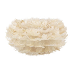 Measures Ø35cm x H20cm. Made of approx. 900 goose feathers, textile and steel. Weighs 0.2kg. The Eos lampshade can be used as a floor, table or pendant lamp shade. The shade can be combined with a large variety of the Umage lighting accessories (sold seperately).