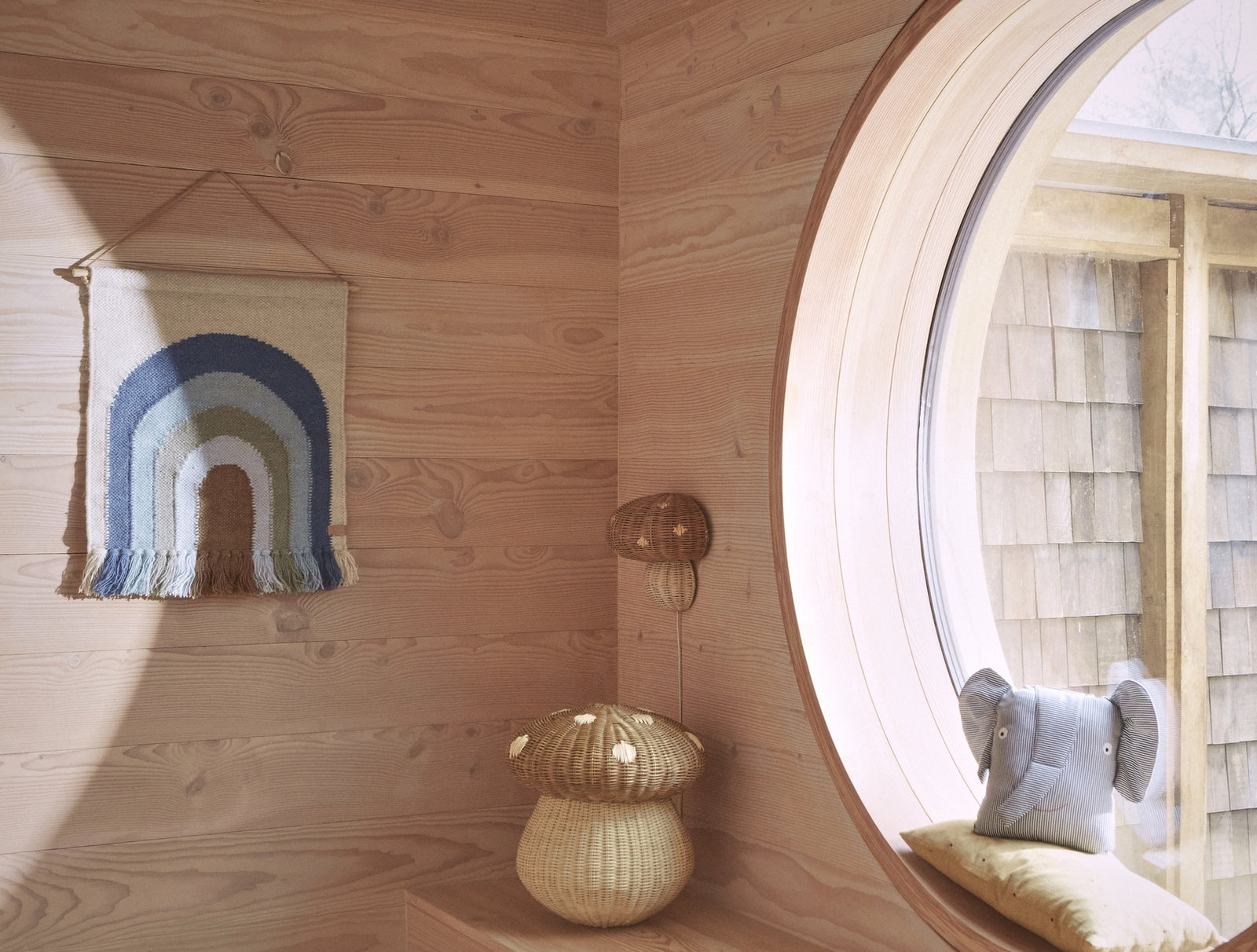 This Follow The Rainbow Wall Rug in a smaller size will make for a charming and colourful wall decoration in your childs room. Hand-woven in bright colours and with fringes at the bottom. The upper part is folded on a stick with a string for hanging. Made of 80% wool and 20% cotton. Measures 69cm (H) x 55cm (W).