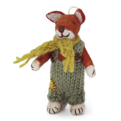 The Gry & Sif Fox Boy Small with Pants & Scarf is a beautifully handcrafted felt decoration brimming with Scandinavian charm. Ethically made in Nepal under Fairtrade conditions, each fox is a unique creation, dressed in cosy green knit pants, a cheerful yellow scarf and finished with hand-stitched details.