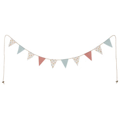 Each garland features a beautifully curated mix of soft, pastel-toned flags, made from high-quality cotton, and stitched with care to ensure long-lasting delight. Whether you're creating a cosy Maileg universe for your mice and bunnies, or simply adding a joyful, Scandinavian-inspired accent to a shelf or canopy, this garland brings warmth, whimsy, and charm.