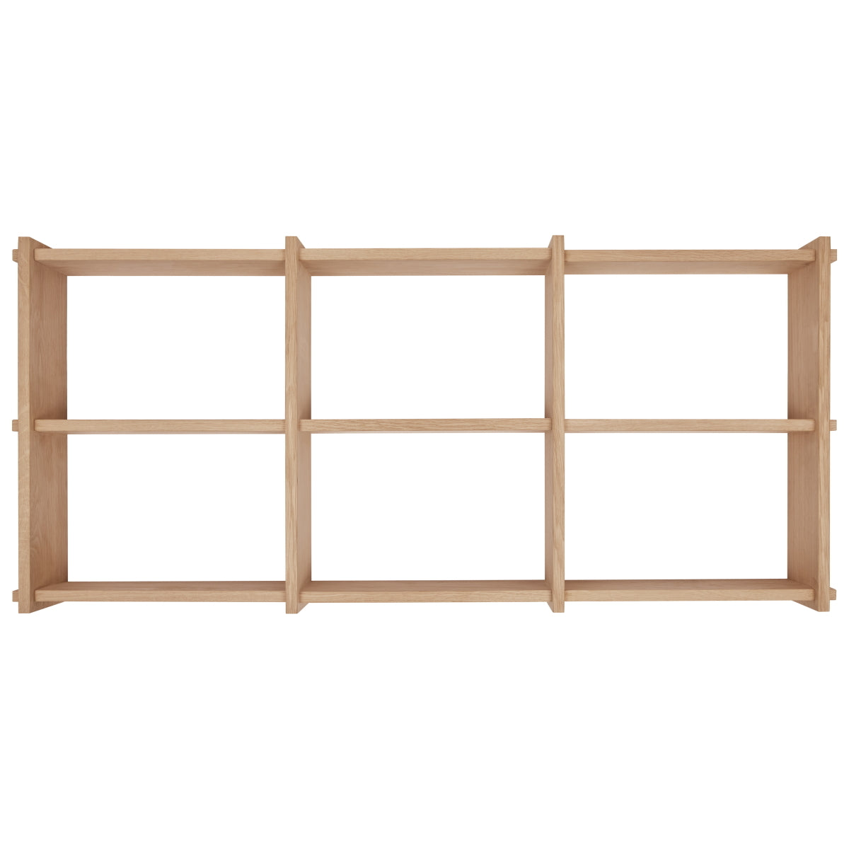 The Grid Shelf is a new interpretation of the shelf we know from our childhood filled with knick knacks. This modern shelf is made from 100% Oak, providing a Nordic touch to any home. Mounting brackets and screws included. Measures 82cm (L) x 37cm (W) x 10cm (D).