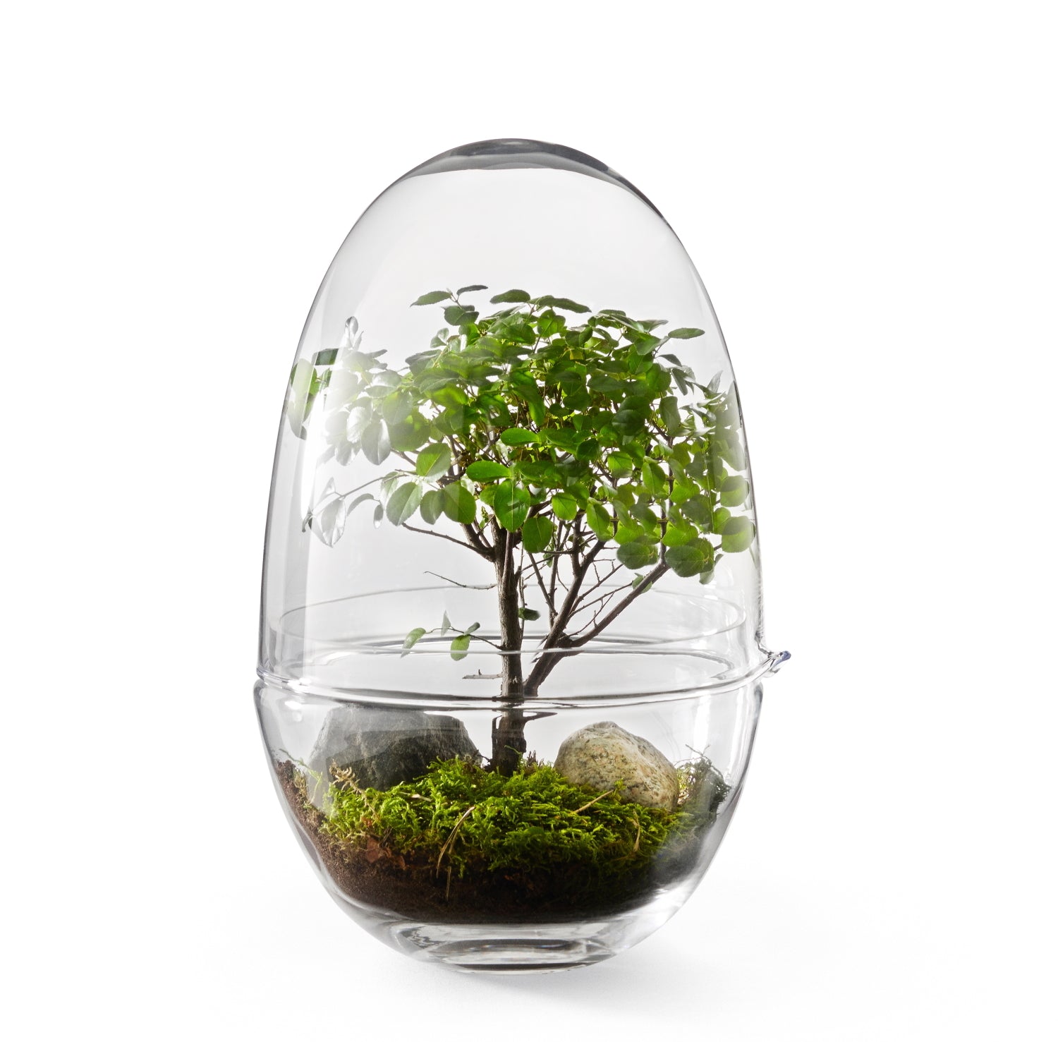 A greenhouse for natures smallest flowers, and a nursery for the plants first stages of life. Caroline Wetterlings Grow is made of two glass parts. The bottom part holds the soil and the plant. The top part is a lid equipped with a spout, allowing it to be used as a watering can. It also functions as a valve that lets in air and regulates the moisture and temperature levels inside the greenhouse. Grow is made of hand-made glass. Measures 32cm (H) x 20cm (Dia).