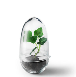 A greenhouse for natures smallest flowers, and a nursery for the plants first stages of life. Caroline Wetterlings Grow is made of two glass parts. The bottom part holds the soil and the plant. The top part is a lid equipped with a spout, allowing it to be used as a watering can. It also functions as a valve that lets in air and regulates the moisture and temperature levels inside the greenhouse. Grow is made of hand-made glass. Measures 14cm (H) x 8cm (Dia).