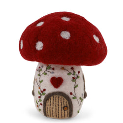 Lovingly crafted from 100% New Zealand wool, this large felt decoration features exquisite hand-finished details including a stitched wooden style door, vine embroidery and a whimsical red heart. Whether you're creating a magical Christmas village, decorating a child's room or adding something special to your mantel, this piece brings warmth, fantasy and craftsmanship together beautifully.