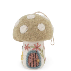 The Gry & Sif Spring Mushroom House Decoration Small is a delightful handcrafted piece that brings a touch of Nordic whimsy to any space. Lovingly made in Nepal from 100% New Zealand wool, this charming felt mushroom features an olive-green spotted cap and a cream base beautifully embroidered with flowers, vines and a tiny felt door. Each piece is handmade under fair trade conditions, making every mushroom wonderfully unique. Designed in Denmark, it’s the perfect accent for springtime displays, fairy gardens or nature-inspired décor.