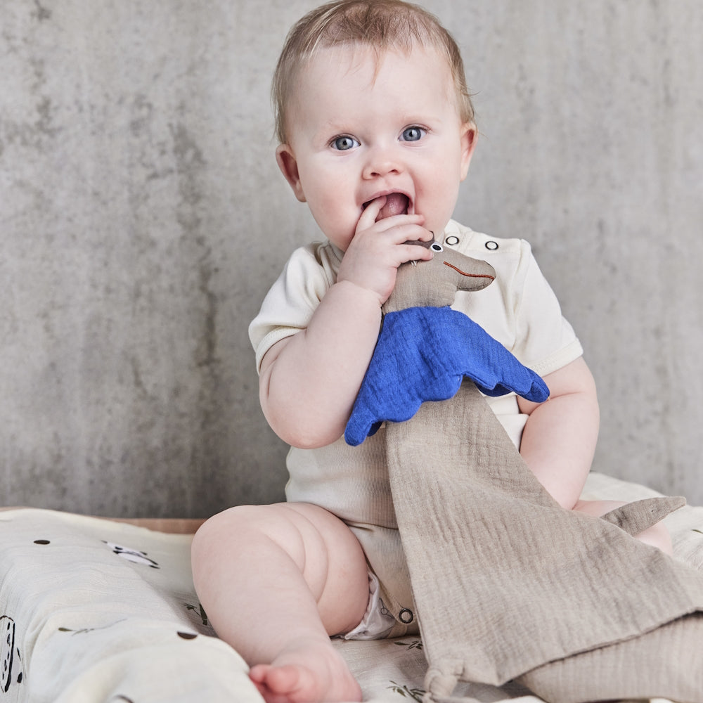 The soft cuddle cloth, with the adorable Hunsi Dog, is the perfect companion when your little one´s seeking for comfort and security. This cuddle cloth combines a soothing power sparkled with the whimsy of an animal friend, providing a source of reassurance and warmth. The Cuddle Cloth is easy to care for, making it a practical choice for busy parents. Simply toss it in the washing machine on a gentle cycle, and it will emerge fresh and clean, ready to provide endless cuddles and comfort. Measures 38cm x 36cm.