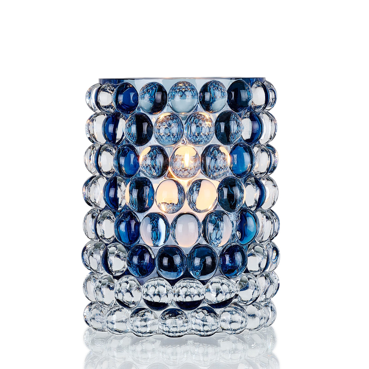 Hurricane Boule is hand-blown in Bohemia, home to the world's best glassblowers. The bubbles, created in a cast-iron mould, give Hurricane Boule it's own unique optic pattern and a luxurious weighty feel. It can also be used as a beautiful vase. Measures 18cm (H) x 13cm (Dia). Weighs between 2.7kg - 3.5kg. Recommended to use a 5cm diameter paraffin candle. Please click here for care instructions.