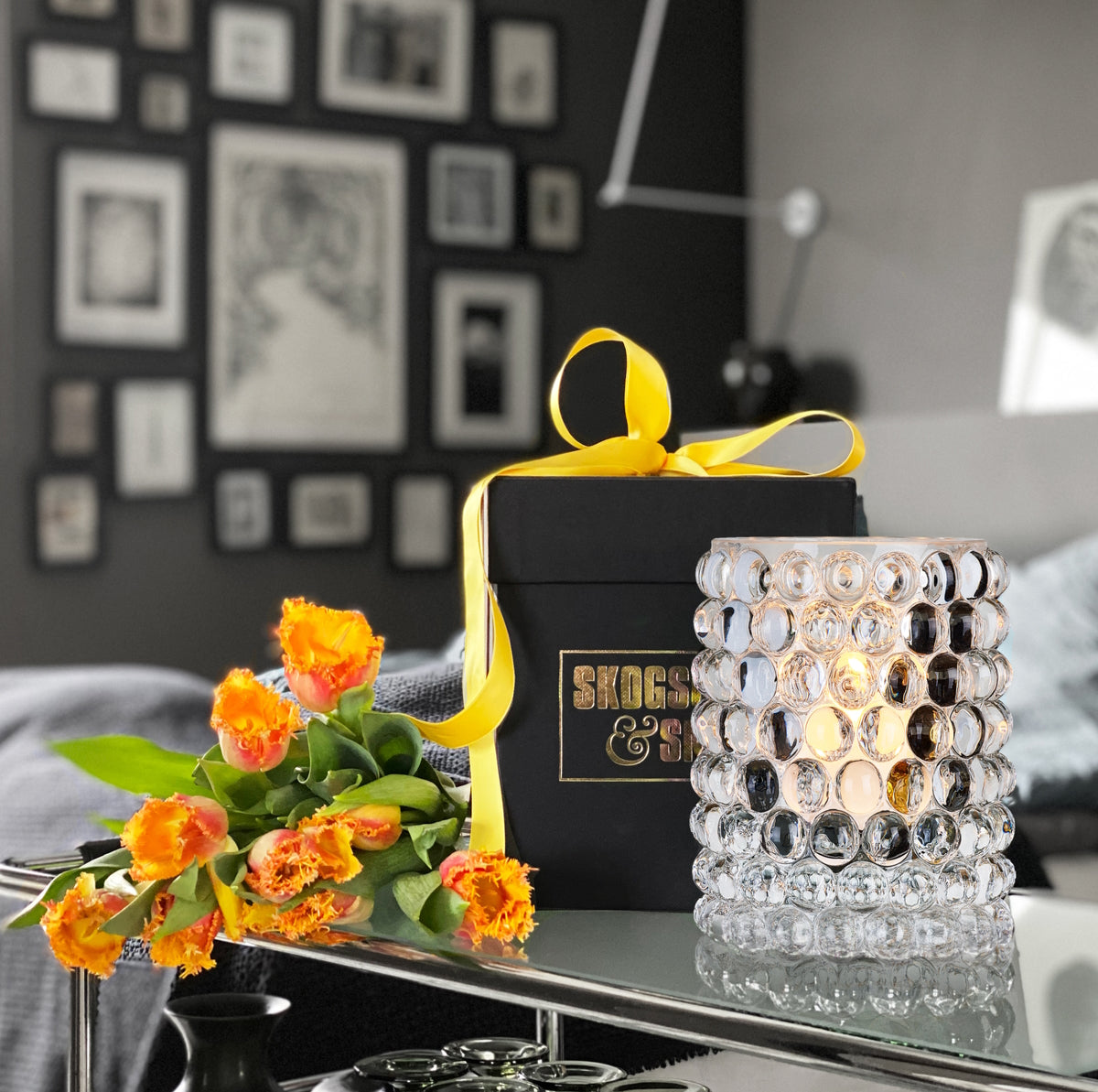 Hurricane Boule is hand-blown in Bohemia, home to the world's best glassblowers. The bubbles, created in a cast-iron mould, give Hurricane Boule it's own unique optic pattern and a luxurious weighty feel. It can also be used as a beautiful vase. Measures 12cm (H) x 10cm (Dia). Weighs 1.2kg. Recommended to use a 3.5cm diameter tealight candle. Please click here for care instructions.