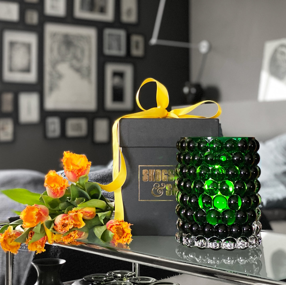 Hurricane Boule is hand-blown in Bohemia, home to the world's best glassblowers. The bubbles, created in a cast-iron mould, give Hurricane Boule it's own unique optic pattern and a luxurious weighty feel. It can also be used as a beautiful vase. Measures 12cm (H) x 10cm (Dia). Weighs 1.2kg. Recommended to use a 3.5cm diameter tealight candle. Please click here for care instructions.