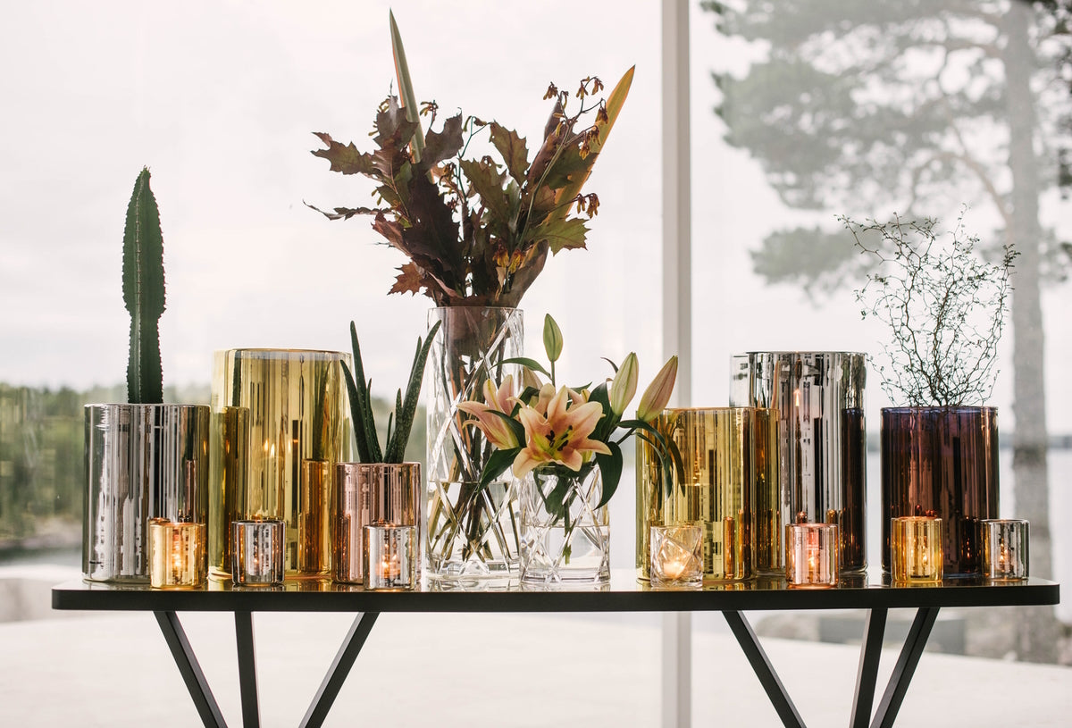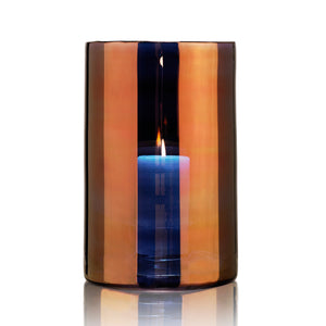 Hurricane Classic is hand-blown in Bohemia, home to the world's best glassblowers, and painted by hand in metallic colours, which gives it a vibrant and opulent glow. As stunning during the day as it is at night, it can even be used as a vase. Measures 36cm (H) x 23cm (Dia). Weighs between 6kg - 7.4kg. Recommended to use a 8cm diameter pillar candle. Please click here for care instructions.