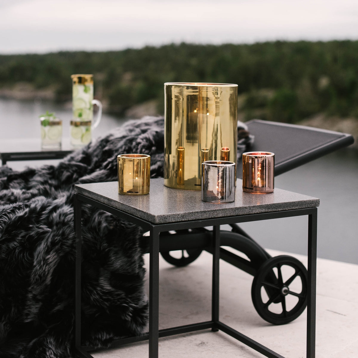 Hurricane Classic is hand-blown in Bohemia, home to the world's best glassblowers, and painted by hand in metallic colours, which gives it a vibrant and opulent glow. As stunning during the day as it is at night, it can even be used as a vase. Measures 9cm (H) x 8cm (Dia). Recommended to use a 3.5cm diameter tealight candle. Please click here for care instructions.