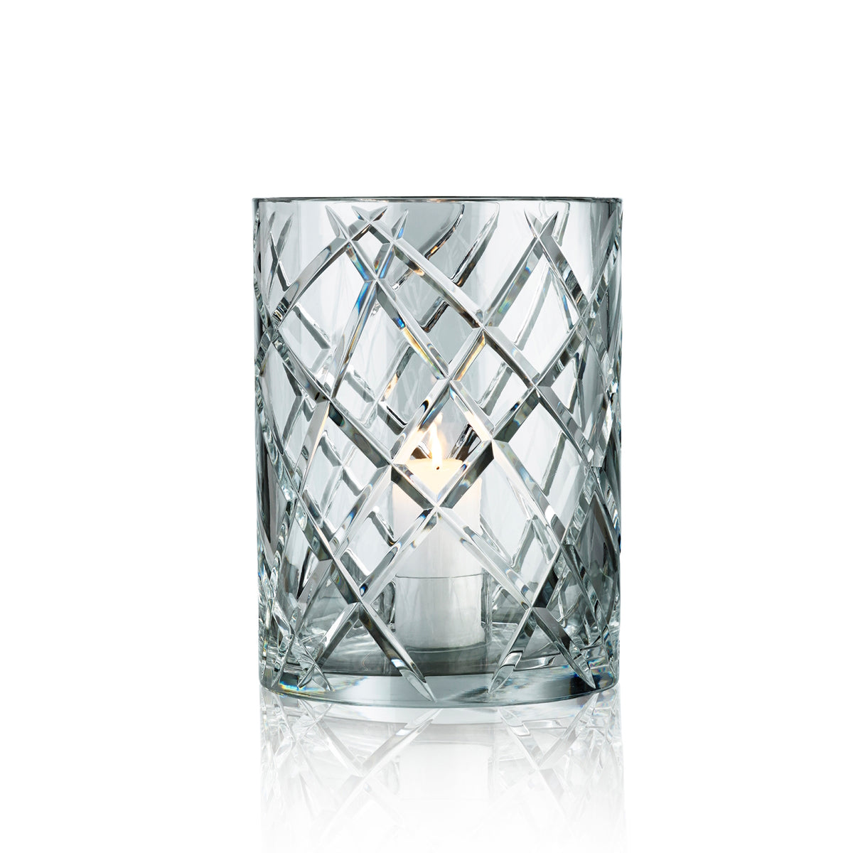 Add a luxurious finish to your home with the Crystal Hurricane range. Made from crystal, the vessel boasts deep cuts inspired by vintage design, cut by skilled bohemian craftsman. Measures 28cm (H) x 21cm (Dia). Weighs approx. 7.5kg. Recommended to use a 5cm diameter candle. Please click here for care instructions.