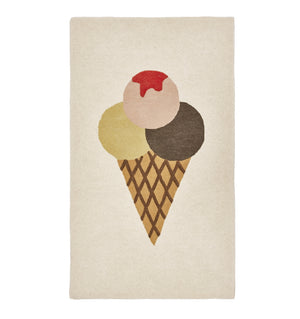 Keep the small feet warm with the cute Ice Cream Tufted Miniature Rug and use it for hours of playtime on the floor, or use it as a decorative wallhanger in the kids room. Made of 80% wool and 20% cotton. Measures 65cm (L) x 45cm (W).