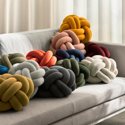 A cushion with an unique character, based on sculptural form instead of patterns. Knot is made from a knitted tube, several metres in length, which is then tied up to create a compact knot which is as comfortable as a support on the sofa as it is elegant to behold. Thanks to its strong design, the Knot cushion belongs to the exclusive group of products that remain in one’s memory. Handmade of 50% wool and 50% acrylic with a polyester filling. Cushion measures 30cm x 30cm x 15cm and weighs 0.65kg.