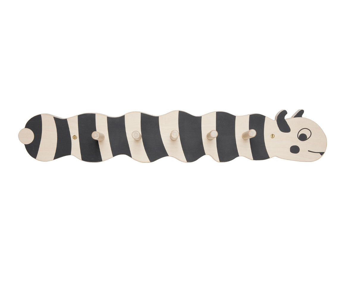 A playful and functional piece designed with natural materials. This Larva Coat Rack not only embodies a whimsical design but also brings back old friends of OYOY. Sold with brass screws for easy installation, it seamlessly combines playful aesthetics with functionality. With a maximum load of 10kg and 2kg per hook, this coat rack is a perfect blend of charm and practicality. Measures L60cm x H10.5cm.