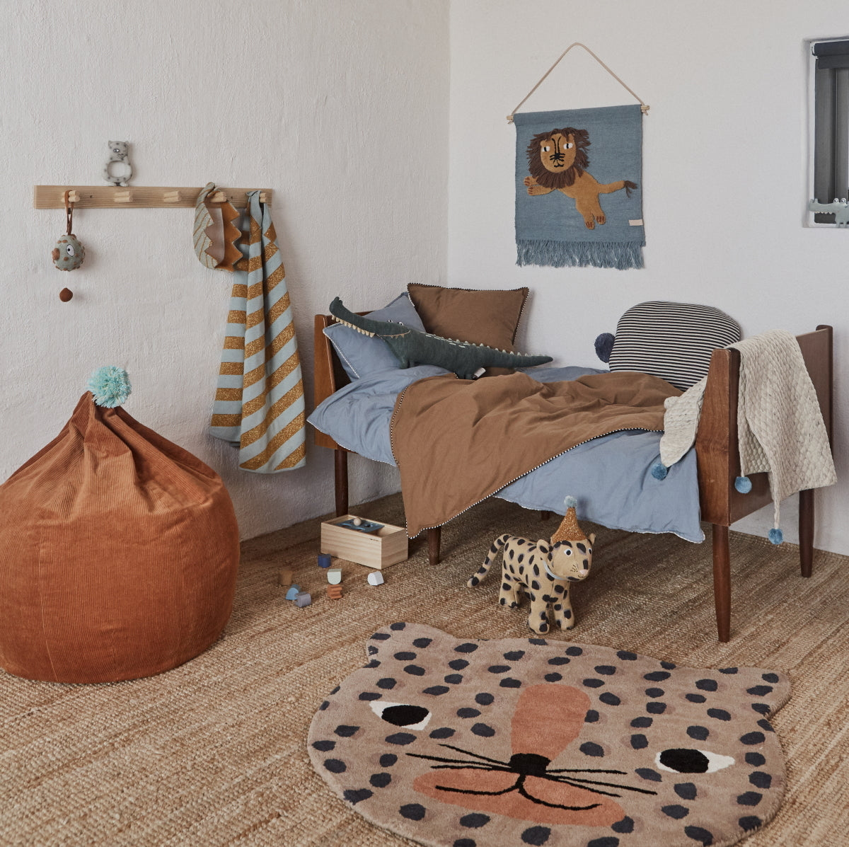 This Leopard Rug illustrates a playful leopard and is coloured in caramel shades giving the rug a very cute and adorable look. The Leopard Rug is made of 80% wool and 20% cotton. Measures 84cm (H) x 94cm (W).