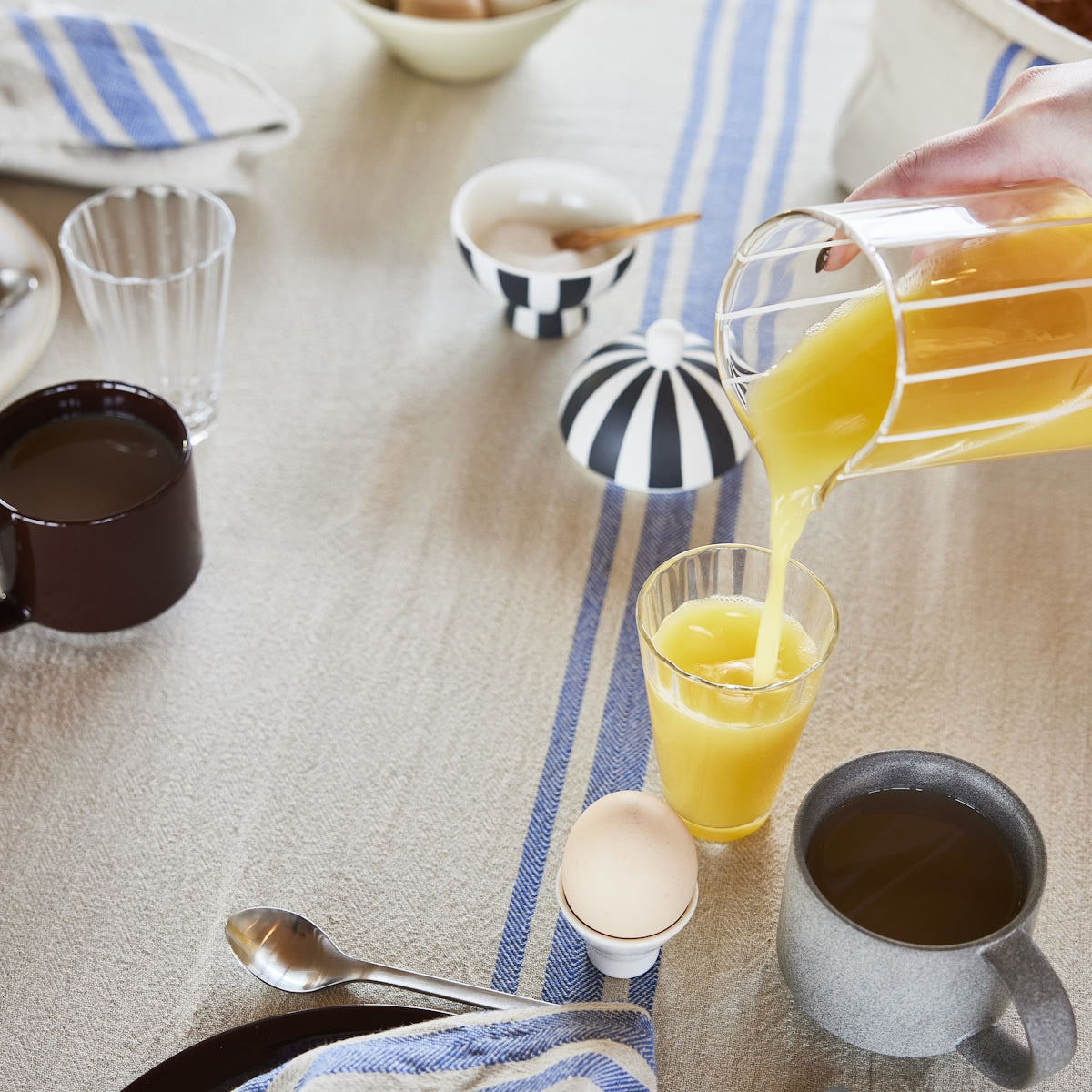 The Linu Tablecloth is a highlight of the Linu series crafted from organic cotton and Oeko-Tex polyester filling. Adorned with a herringbone weave and a simple design featuring a variation of different stripes, this tablecloth is available in two sizes for versatile styling. Mix and match with the Linu Napkins to create a personalized and elegant dining setting.