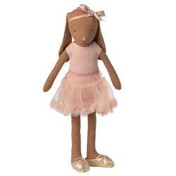 The well known Maileg bunny dressed up as a ballet dancer. Wearing a rose coloured suit, tulle skirt and ballet shoes. Measures 40cm in length.