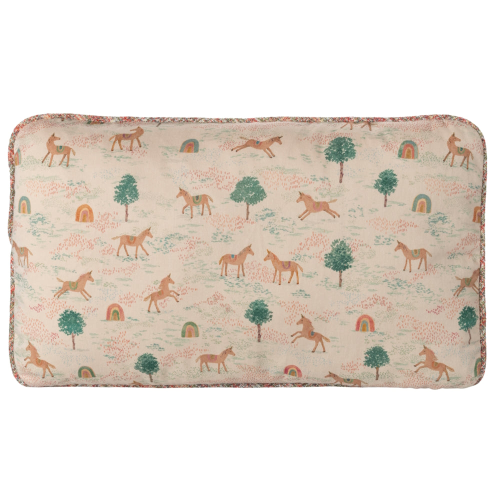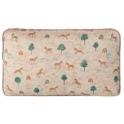 This rectangular cushion comes with the Unicorn print on side and a floral print on the other side. Decorative piping has been added around the cushion to complete the look. Measures 23cm x 39cm. Made of cotton with a polyester filling.