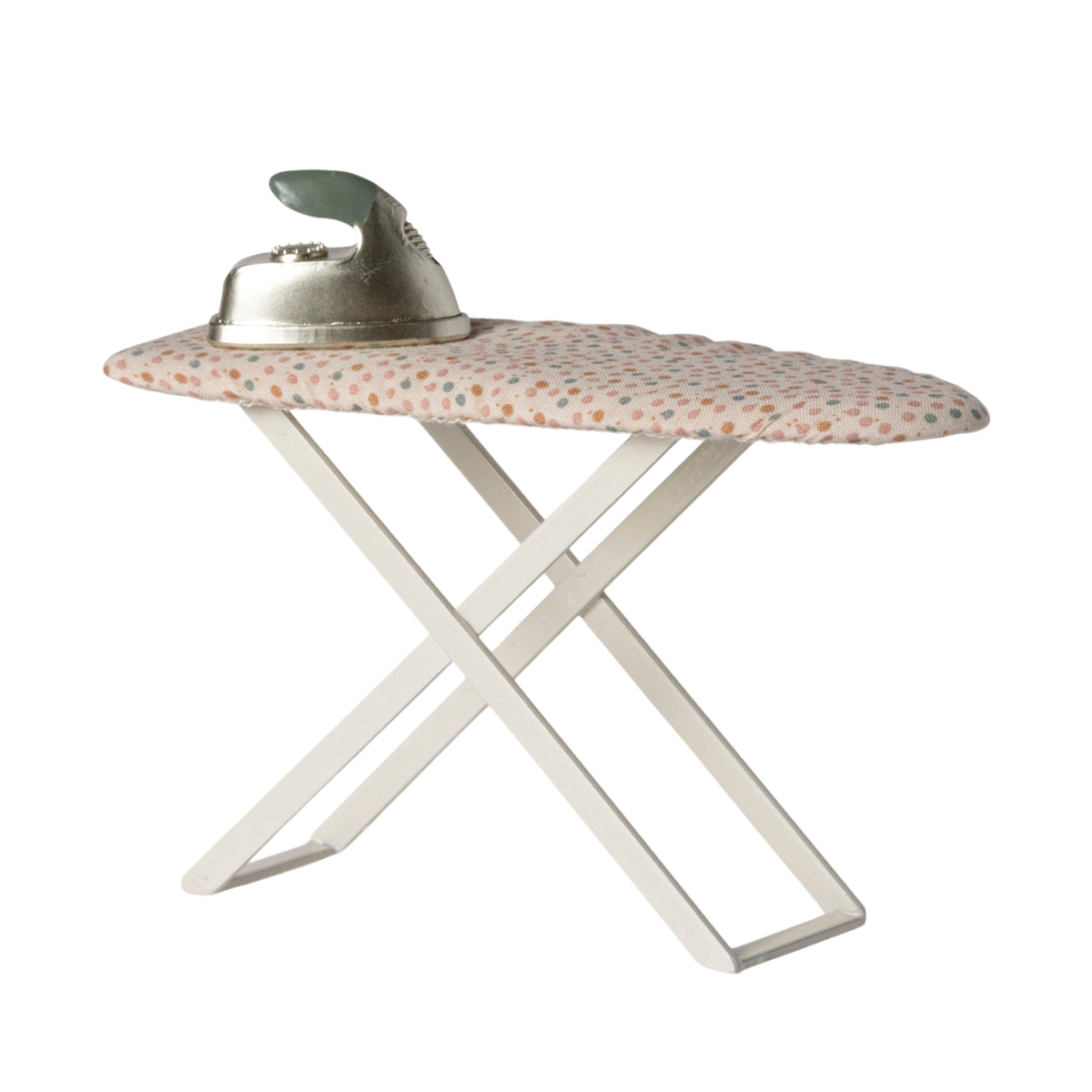 To make your Maileg laundry room fully equipped, you need an iron and ironing board. This set will make the play even more authentic. Made of metal and covered with unique Maileg fabric. It is perfect in size for the mouse family. Measures H8cm x L12cm.