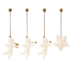 In this set are three angels and a star metal ornament which will look beautiful on the Christmas Tree every year. Presented in a lovely gift box which measures 13cm in length.