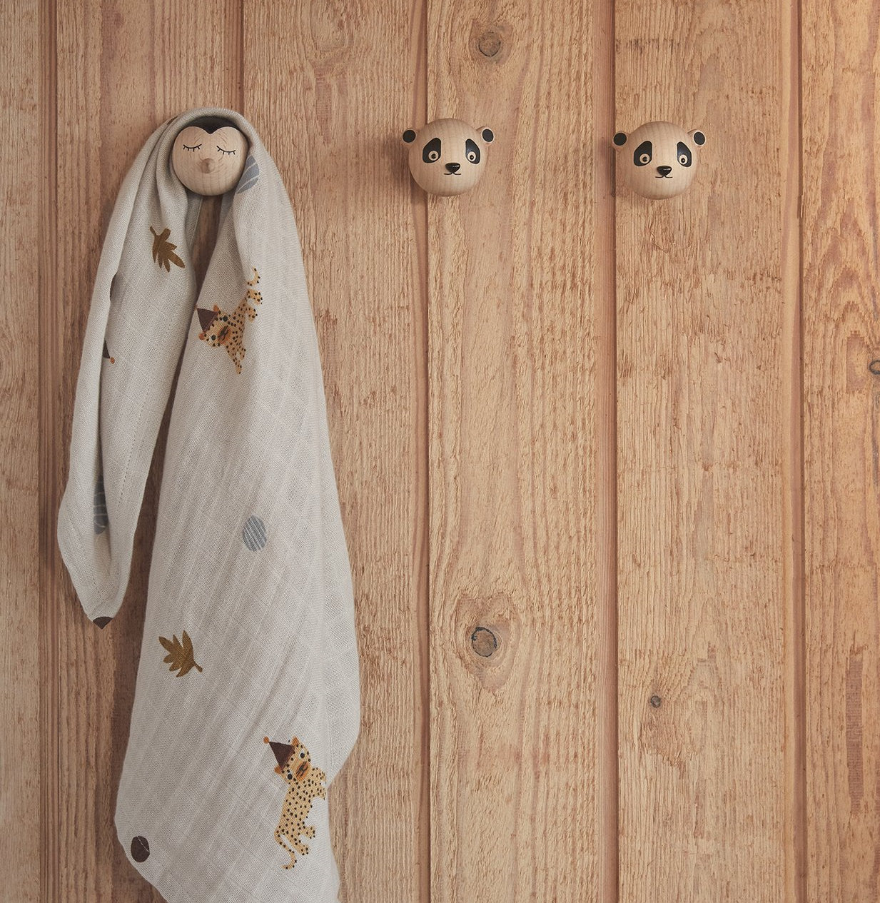 The Panda Hook is practical and decorative for the kids bedroom or in the hallway. The hook can be used individually or combined with other cute hooks from the Mini collection. Made of 100% beech wood with painted details. Made of FSC certified wood. Measures 5.5cm in diameter.
