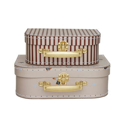 These small suitcases is a must have in any children's room. Your child will love to play and organize with the cute suitcases. Comes in two different sizes. Made of cardboard and measures H8.5cm x L25.5cm x W18cm / H7.7cm x L20.5cm x W14.7cm.