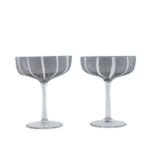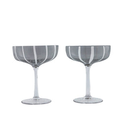 Serve your favorite cocktail, ice-cream dessert or champagne in these striped coupe glass from OYOY. The Mizu series is characterized by an elegant, light and modern expression - which catches everyone's attention. The coupe glass is designed with a long neck, which is combined with the large and open bowl. Each glass is unique as it is mouth blown, with handmade details. Comes in a set of two. Capacity is 230 ml. Measures 14cm (H) x 11.5cm (Dia). Dishwasher safe.
