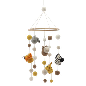 Whimsical and handcrafted, the Gry & Sif Bunny with Balloons Mobile brings a dreamy, Nordic touch to nurseries and children's spaces. Featuring a felt bunny gently floating beneath colourful balloons, surrounded by soft white clouds and yellow felt dots, this mobile is lovingly handmade in Nepal from 100% New Zealand wool and is Fairtrade-certified. A beautiful gift for new parents and a charming focal point above a cot or change table. Measures 20cm in diameter.