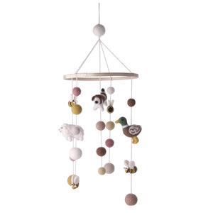 Bring adventure to the nursery with the charming Safari Animals Mobile by Gry & Sif. Lovingly handmade in Nepal from 100% New Zealand wool, this Fairtrade-certified mobile features a delightful lineup of safari friends - lion, zebra, giraffe, elephant and hippo - suspended among warm-toned felt balls. Perfect for above a cot or change table, it’s a stylish and ethical choice for safari themed nurseries or gifting occasions. A beautiful blend of Scandinavian design and playful storytelling. Measures 20cm in diameter.