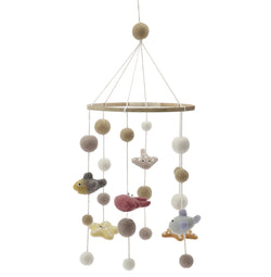 Bring the magic of the ocean to little ones’ spaces with this enchanting mobile from Gry & Sif. Handcrafted from pure New Zealand wool and coloured with eco-friendly dyes, each sea creature is lovingly needle-felted by skilled artisans in Nepal under Fair Trade certified conditions. Featuring a gentle palette of ocean-inspired hues, this mobile includes a charming array of sea animals, perfect for nurseries or children's rooms.