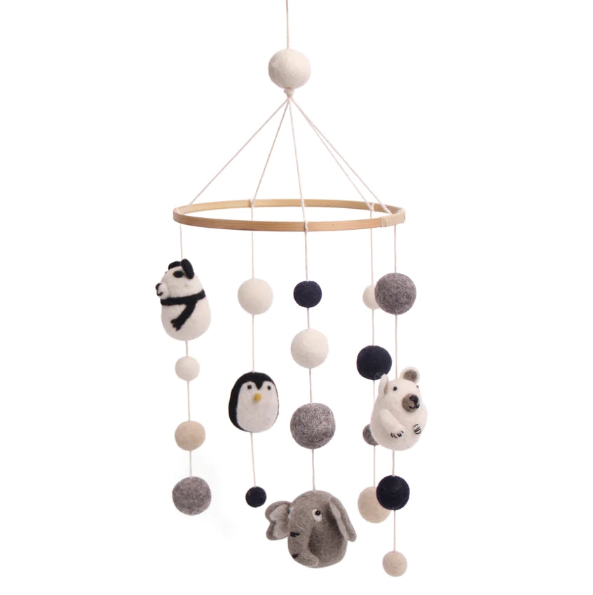 Delightful and full of character, the Gry & Sif Zoo Mobile brings a playful yet elegant touch to nursery décor. Featuring a beautifully handcrafted collection of zoo animals - including a panda, penguin, elephant and polar bear - this mobile is made from pure New Zealand wool and felted by hand in Nepal under Fair Trade certified conditions.