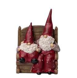 Bring a cosy, heartwarming touch to your holiday décor with the charming Elmer & Max in Rocking Chair from Naasgransgarden. This adorable hand-painted figurine features two festive characters - Elmer and Max - seated together in a rustic wooden rocking chair, dressed in their classic red outfits and signature long hats. Decoration measures 9.1cm in height.