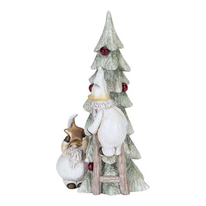 Add a touch of whimsical storytelling to your holiday décor with the delightful Santa Svante and Dante figurine from Naasgransgarden. This charming scene captures a playful moment as Santa Svante, standing on a ladder, decorates a beautifully sculpted Christmas tree with berries, while his friend Dante, holding a star, waits patiently to place the finishing touch. Decoration measures 15.5cm in length.