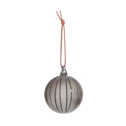 The OYOY Natale Glass Ball Smoke is a refined take on festive ornamentation, blending Scandinavian simplicity with a moody, modern palette. Hand-painted with fine vertical stripes and crafted from delicate glass, this ornament brings sophistication to any Christmas tree, window display or holiday vignette. Complete with a natural leather string for hanging, it's a timeless styling piece ideal for boutiques and concept stores embracing a minimalist aesthetic. Measures 8cm in diameter.