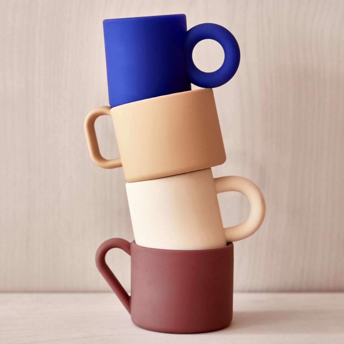 The set of two Nomu Cups are a colourful and practical choice for your child. They will not break when dropped and the handle makes it easy for them to drink on their own. Made of silicone and measures H7cm x W10.6cm x Ø6.5cm and H6cm x W10.5cm x Ø8cm.