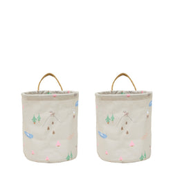 These Deer & Duck Storage Basket are a charming and functional solution for storing small items in your home. With its playful deer and duck pattern, these baskets are perfect for organizing toys, books or other essentials. Made from durable fabric with a PE coating for added protection, it is easy to clean and maintain. Measurements: Small - W18cm x H22cm. Medium - Ø32cm. Large - W38cm x H54cm.