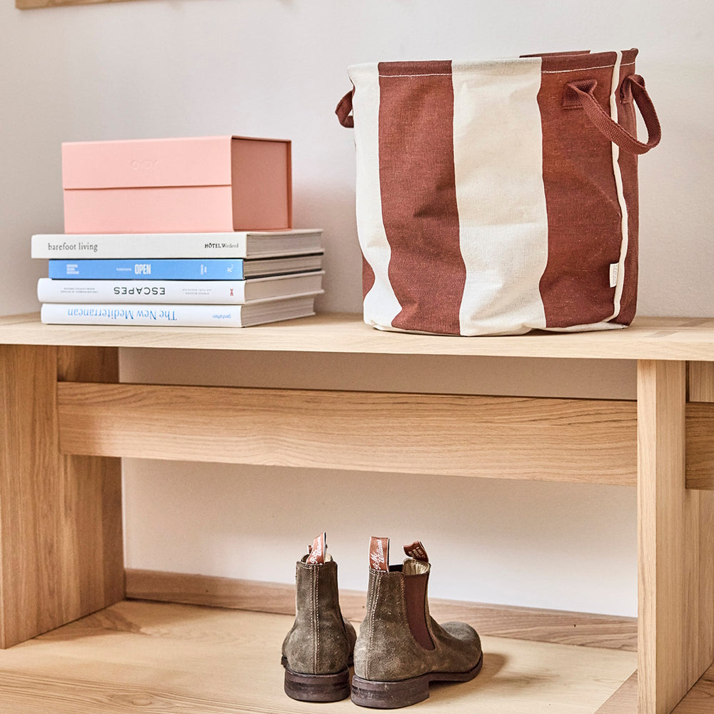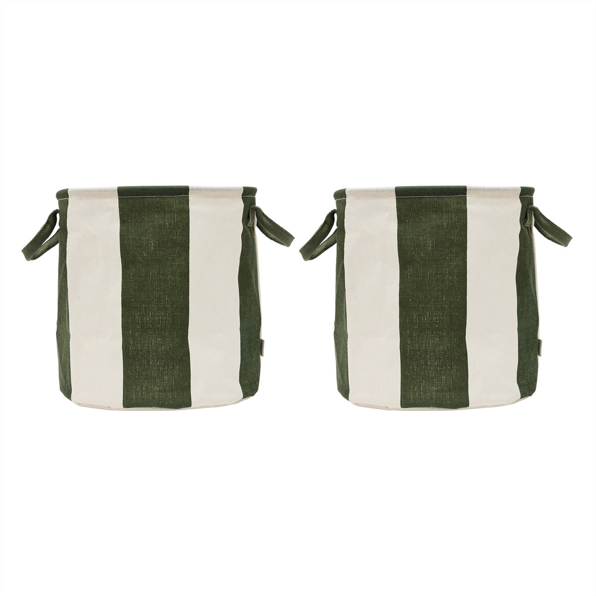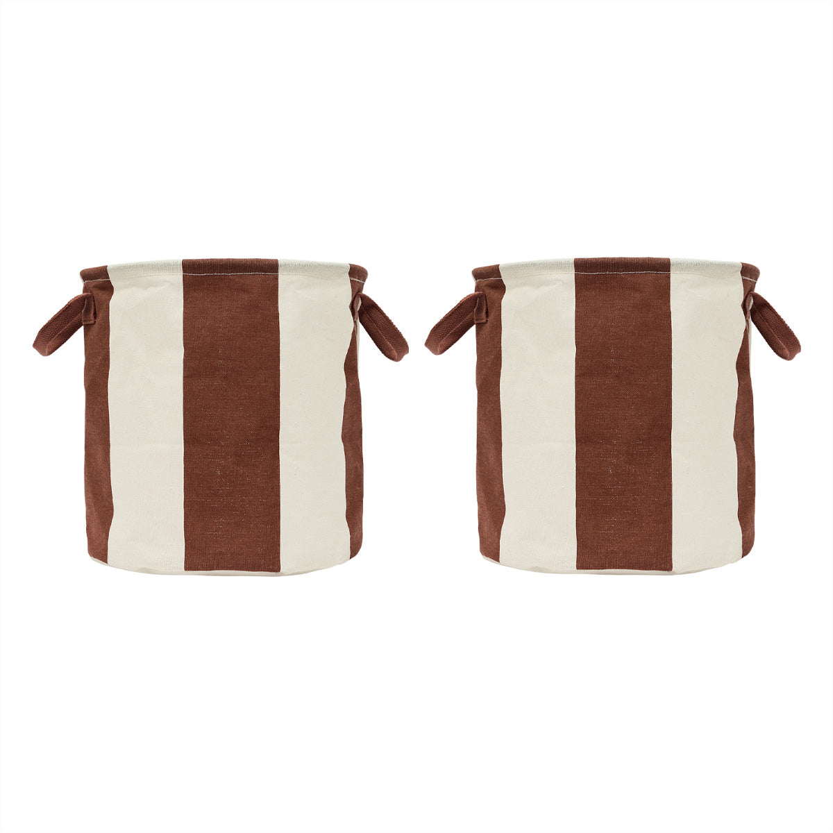 The Kara Storage Baskets with a handle are compact and perfect for organizing small home essentials. Featuring a striped design and durable PE coating, these baskets provide a practical and aesthetic solution for keeping items neatly stored. Measures Ø32cm each.